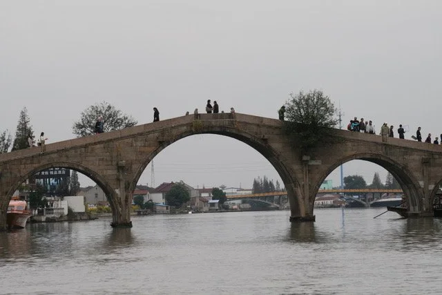Ancient bridge in a small cityoutside of Beijing China which is used as a walking bridge to move from one side of the town to the other side. Slide 1 Slide 1 (current slide)